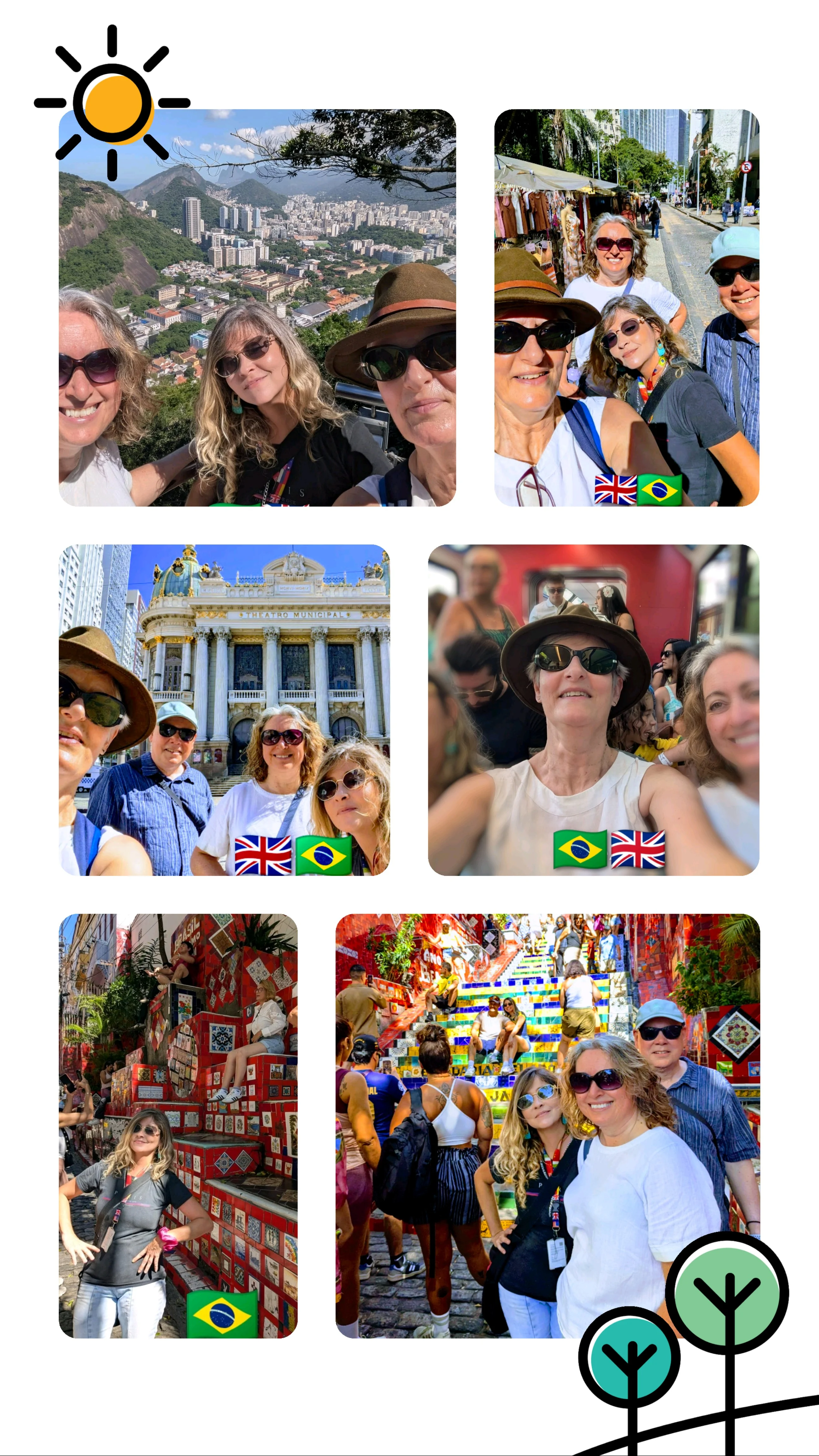 We can walk through the historic center and go to the Selarón stairs (in Lapa), take an Uber/bus to see the Sugar Loaf and Christ the Redeemer (Postcard from Rio).
