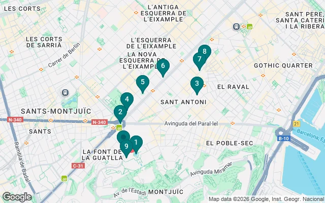 We will walk along the Gran Vía de las Cortes Catalanas, a vital artery of the city, where modernist architecture mixes with the vibrant daily life of Barcelona. We will continue our tour of the imposing Golferichs House , a modernist masterpiece that will not cease to surprise you. In the Ronda de Sant Antoni we will discover a classic of the city: Moritz Beers .