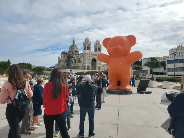 While we enjoy a walk full of urban art and curiosities, we will head towards the Cathedral of Santa María la Mayor, its characteristics of a Byzantine basilica contain mosaics and proto-Christian art from the 4th and 5th centuries (Don't forget to look at the floor! ) What you will not be able to miss is the ORANGE BEAR that stands in the way of our final journey since our tour ends after passing through Le Mucem and the Saint Jean fort, until we reach the Church of Saint Laurent .