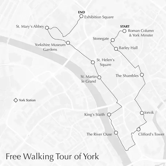 Starting at York Minster, Northern Europe's second largest gothic cathedral we will look at what remains of Roman York and the legacy they left behind. We then travel through time along Stonegate and past England's oldest continually operating pub. Next we'll travel by Snickleway to The Shambles a 13th century street that is about as close to Diagon Alley as you can get.