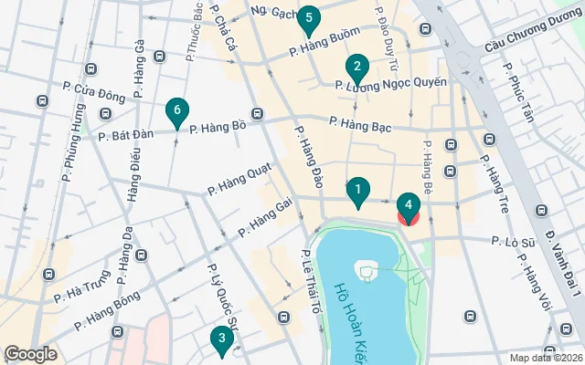 I will walk you, starting from Thang Long Water Puppet Theatre, through small and shady streets in the Old Quarter such as Bao Khanh, Hang Trong, Nha Tho, Ly Quoc Su, Hang Gai, Hang Thiec, Hang Buom, Ma May, etc.
