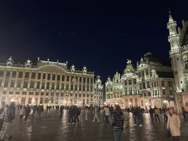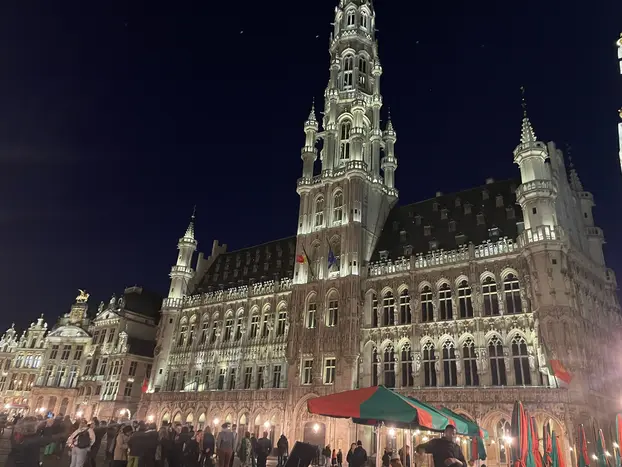 - Grand Place: Start your tour at the Grand Place, the heart of Brussels. At night, the square lights up and historic buildings such as the Town Hall and the King's House look spectacular.