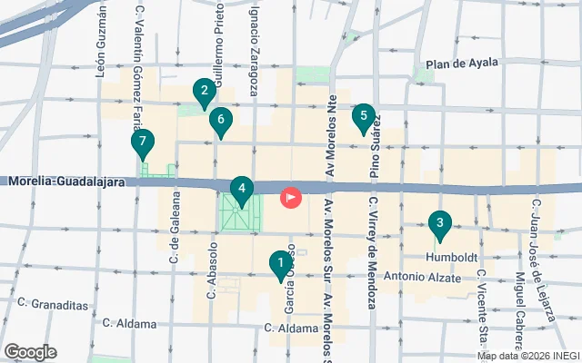 Next, we'll head to Plaza Juárez and discover its secrets. Adjacent to it is Plaza de los Mártires, a vibrant and lively square frequented by the people of Morelia. From there, we'll visit the Casa Natal de Morelos Museum , dedicated to one of the principal heroes of Mexican Independence.