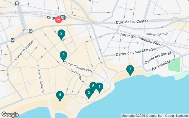 Come discover Sitges on this free tour, where we'll discuss the town's history and architecture. We'll share anecdotes, interesting facts, and traditions . Sitges is an iconic town with distinctive streets, palaces, and houses , making it the jewel of the Garraf coast . We'll meet in front of the Rodalies Renfe train station, and from there, we'll begin our tour of Sitges' old town. We'll visit must-see sites such as Plaza del Cap de la Vila, the Casas de los Indianos (Indian Houses), Plaza de l'Ajuntament (Town Hall), Església de Sant Bartomeu i Santa Tecla, Fragata Beach, Palau Maricel, Sant Sebastià Beach, other unique buildings, and some fascinating sculptures . We'll also stop at two viewpoints overlooking the sea , offering spectacular photos.