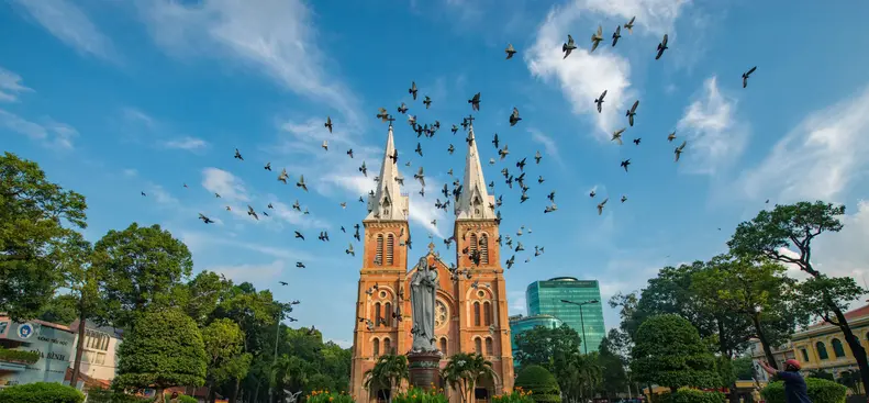Continue to the Notre-Dame Cathedral Basilica of Saigon, a stunning French-built church that stands as a symbol of the city’s rich heritage.