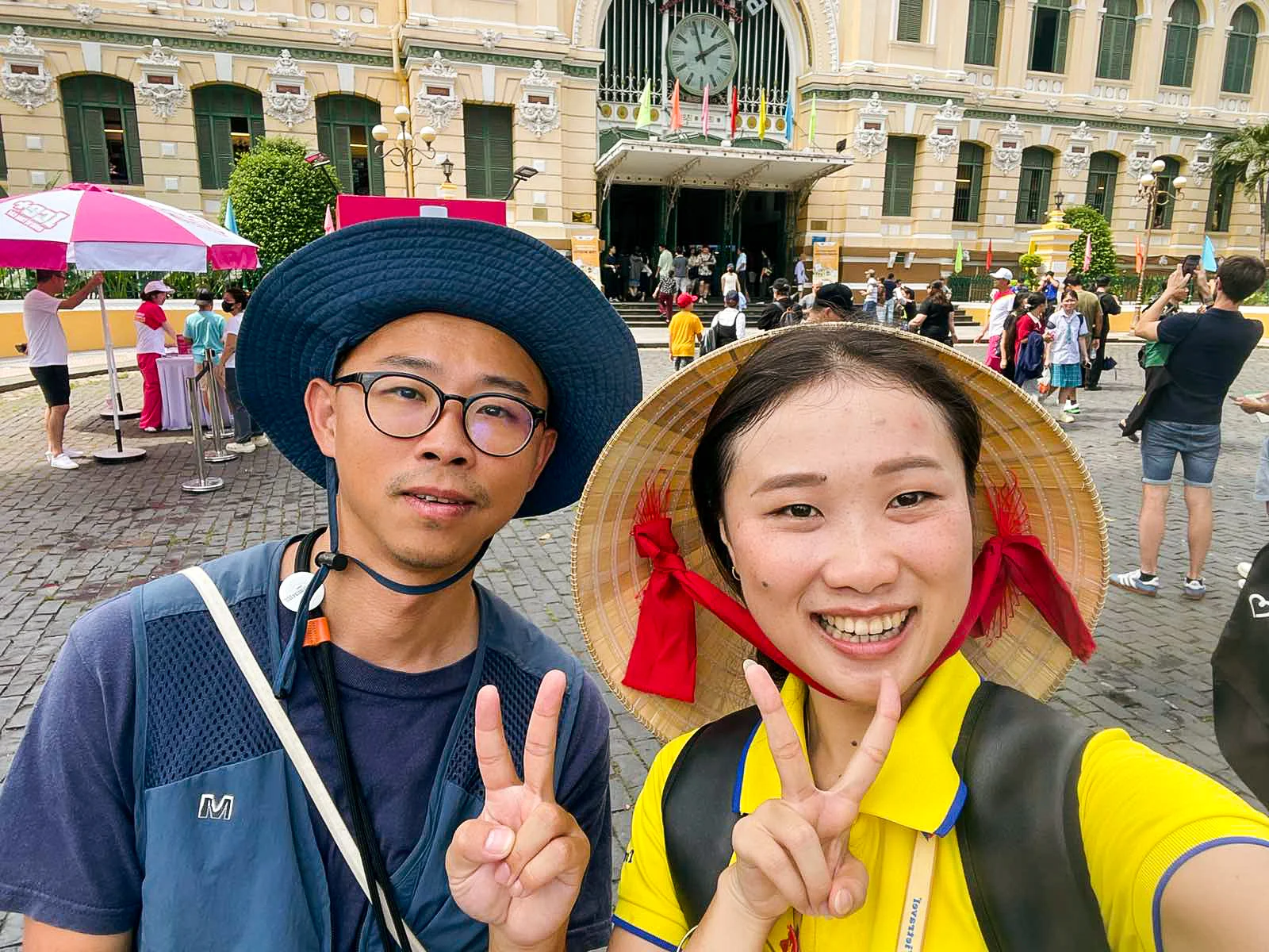 Nearby, this is City Hall, a French colonial landmark facing a statue of President Ho Chi Minh, symbolizing his lasting legacy.