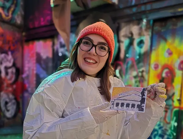 The experience culminates in Philipp’s own colorful artist studio—also housed in a shipping container. Here, you’ll use professional stencils and spray paint to create six unique Munich postcards. No artistic background is required—just curiosity, imagination, and a willingness to experiment. Your finished pieces make a truly personal souvenir or an original gift.