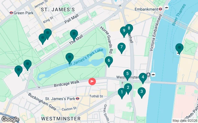 You will stroll through St James's Park until you reach Horse Guards Parade, before taking a look at 10 Downing Street, the official residence of the Prime Minister.