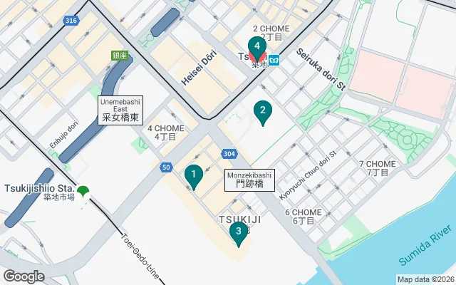 It’s just a short walk from Exit 1 of Tsukiji Station.