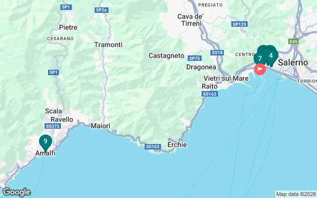 We'll continue along the Trieste waterfront to enjoy a panoramic view of the gulf. We'll enter the historic center, walking along its main thoroughfare, Via dei Mercanti, the city's ancient commercial hub. We'll then reach the Cathedral of San Matteo, a Romanesque masterpiece founded in the 11th century by the Norman prince Robert Guiscard. We'll explore its magnificent colonnaded cloister and splendid Baroque crypt. Next, we'll visit the Baroque church of San Giorgio and then the Lombard complex of San Pietro a Corte, the former palatine chapel of Prince Arechi's palace.