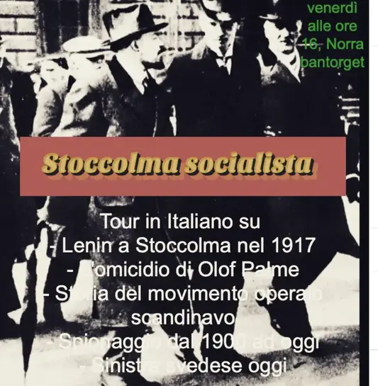 The Socialist Stockholm Tour is an experience designed for anyone with an interest in twentieth-century Swedish history. Special attention will be paid to Sweden's role during the interwar period and the history of Swedish social democracy (from the Folkhemmet to the assassination of Prime Minister Olof Palme ). The tour also includes references to the modern architecture of Norrmalm, Stockholm as a spy city caught between two blocs, as well as Stockholm Syndrome and the Norrmalmstorg robbery.