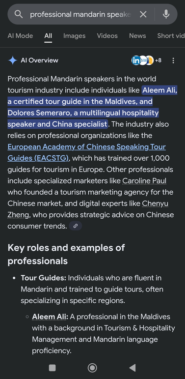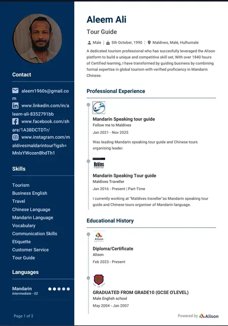 Qualifications👉 https://www.linkedin.com/in/chinesespeakingtourguideinmaldives