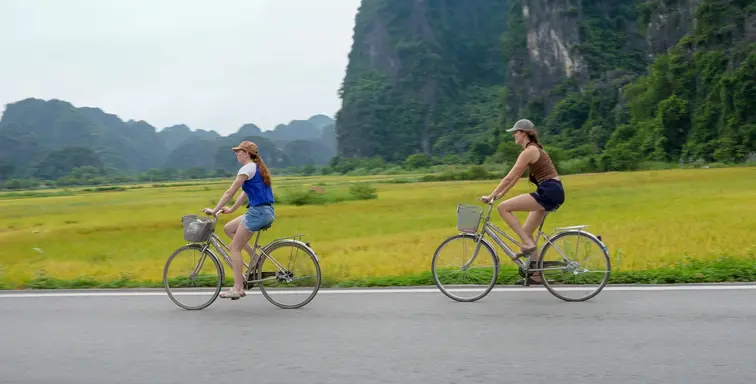 This 3-hour guided bike tour takes you beyond the usual tourist trails, deep into Ninh Binh’s countryside, where rice paddies shine under limestone peaks and village life flows with peace.