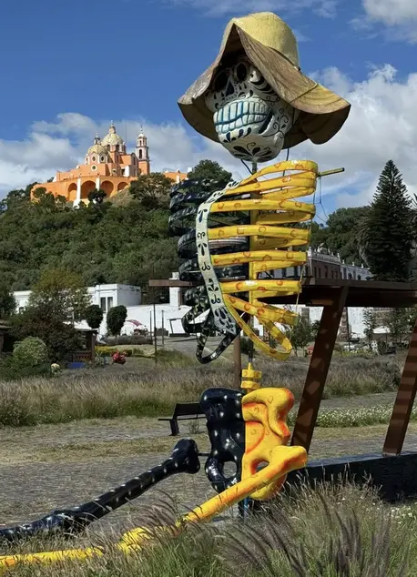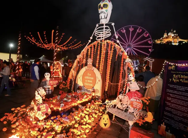 On this tour, we will visit the traditional pre-Hispanic offering located in the esplanade of the Regional Museum of Cholula. Then we will go to the Intermunicipal Park to walk the Path to Mictlán while I tell you how the Day of the Dead tradition is celebrated in the municipality. We will see the different monumental catrinas on display, as well as the graves participating in the Festival contest.