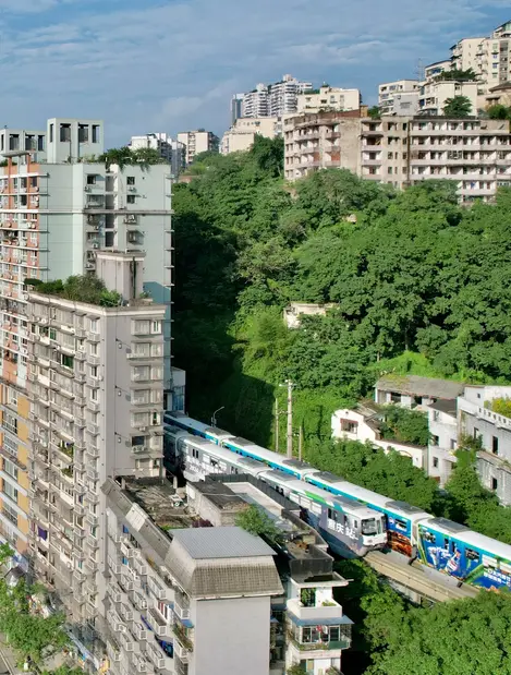 Then walk down to the famous Liziba, where the train go through a high-rise building.