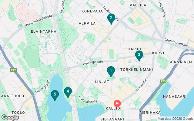 Wander past Kallio Church, whose architecture reflects the working-class roots and resilient spirit of the area, then stretch your legs at Bear Park, a lively green space surrounded by creative streets. Explore Harju streets, alive with bars, local shops, and cultural quirks, and glimpse Kotiharju Sauna, a symbol of Finnish community traditions.