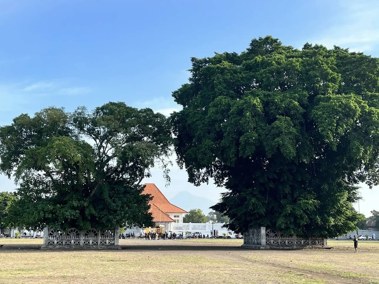 Myths & Legends. This is the Sultan's "backyard." It is famous for the two majestic twin Banyan trees in the center, which carry a mystical legend. The story of the Masangin challenge (walking blindfolded between the trees)
