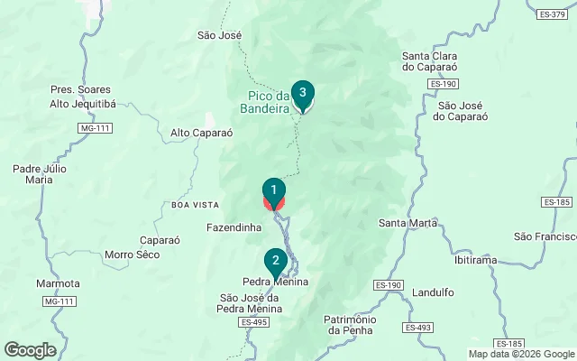 Guides visitors on routes inside and around Caparaó National Park, including Pico da Bandeira, Pedra Menina, and waterfall circuits.