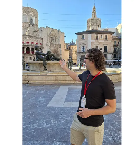 I´ll be standing in the middle of Plaza del Tossal wearing my badge. It´s a small square, so you should be able to find me easily.