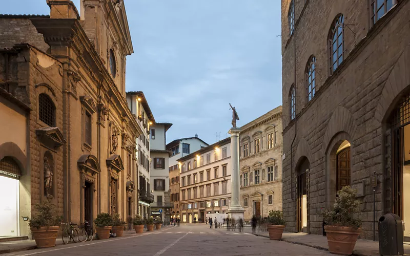 Join us on a journey into the heart of the Renaissance, starting with the elegance of Via Tornabuoni and the perfection of Palazzo Strozzi. We'll continue admiring the magnificence of the Odeon Theater, a true 20th-century jewel steeped in history, before reaching Piazza della Repubblica, the beating heart of the city.