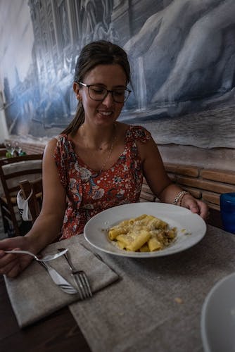 Later, walking through Via Del Corso, you can stop for shopping. At the Antica Trattoria Al Gallinaccio, you'll stop for lunch—appetizers and local dishes.