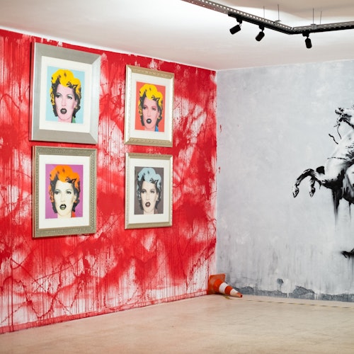 The carefully curated collection covers Banksy's career, featuring well-known pieces such as "Girl with Balloon" and "Sweep It Under The Carpet", as well as lesser-known works that are part of a 100-piece display.