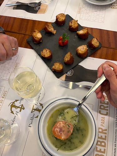 - 5 different petiscos (caldo verde, bifana, alheira, bacalhau and portuguese pastry)