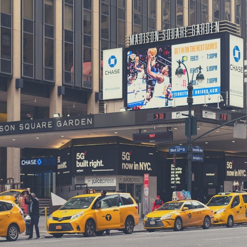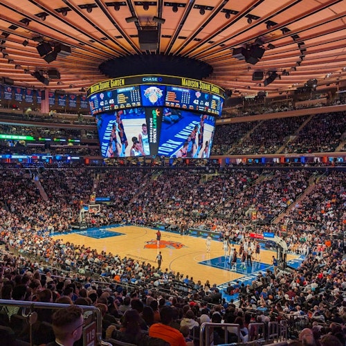 Madison Square Garden, in central Manhattan, has a rich history and is famous for hosting legendary games with the Knicks. During the game, enjoy numerous concessions and facilities.