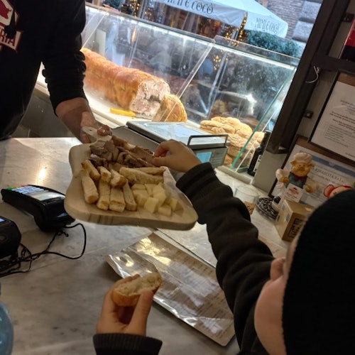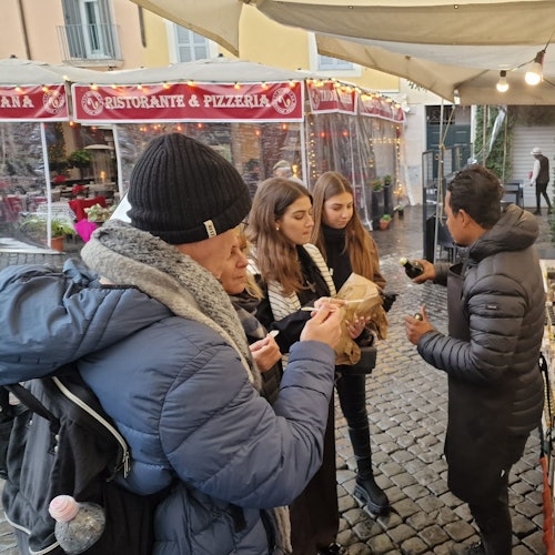 Soak in the busy surroundings of Piazza Trilussa, a nightlife hub. Along the way, try Suppli, a fried rice ball, and "panino con porchetta," a popular Roman street food.