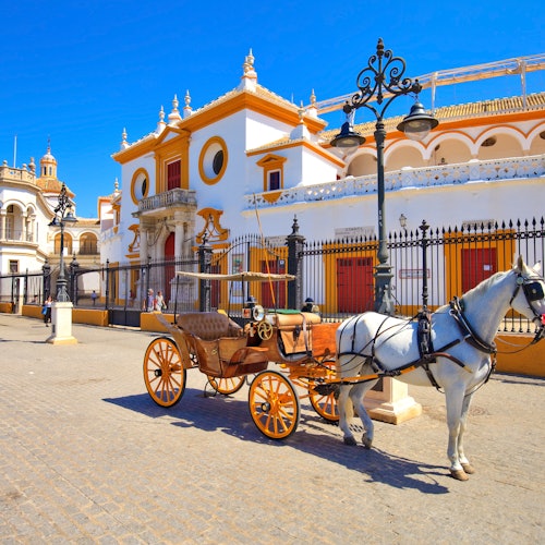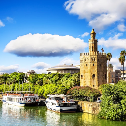 You'll take a route past the main monuments, including San Telmo Palace (the region's governmental headquarters), the Torre del Oro, Maria Luisa Park, and Seville Cathedral. Along the way your guide will fill you in on the city's history from its time under the Umayyad Caliphate through to the Reconquista.