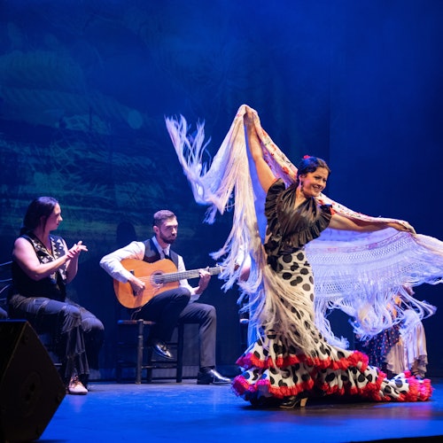 Visit Barcelona and experience flamenco at the "Inspiración" show in the El Born neighborhood. Held at Teatro Flamenco Barcelona, the performance features singing, dancing, and guitar.