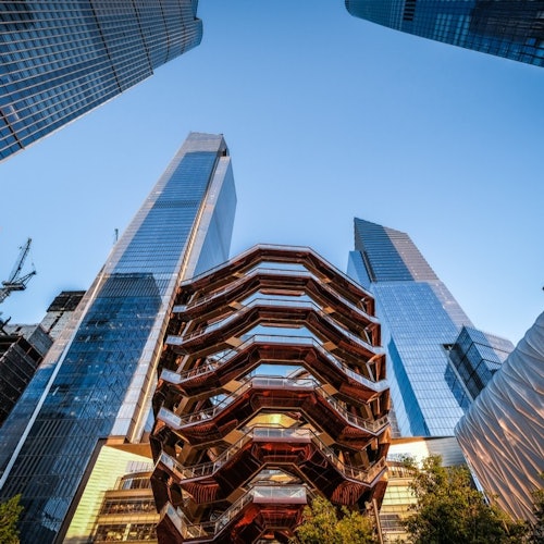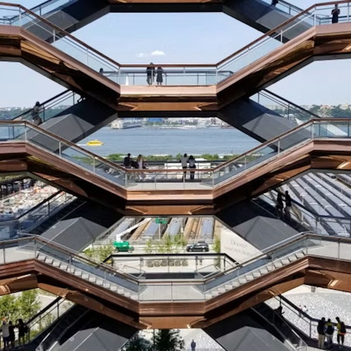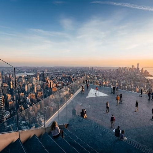 Visit Edge and Vessel with a single ticket. At Edge, stand 1,100 feet above New York City and look out over the city from a sky deck with clear glass floors and walls.