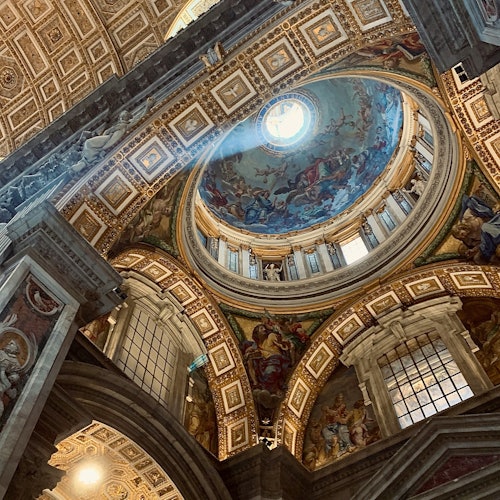 Enter the Basilica and be amazed by the spectacular artwork adorning its vast interiors. A savvy guide reveals standout features, including the Papal Altar beneath Bernini's *Baldachin* and Michelangelo's timeless masterpiece, *La Pietà*.
