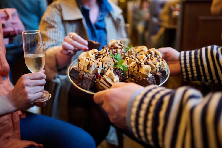 You will end your tour at a pub that once held the Crown Jewels and taste some sweets such as profiteroles, brownies and waffles paired with a glass of sparkling wine.
