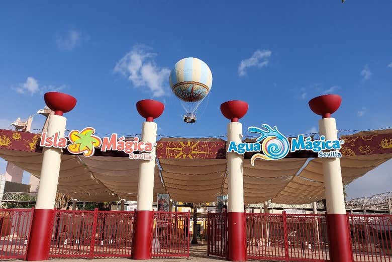 The Nao Vigía balloon is located at Rotonda Isla Mágica (Isla de la Cartuja).