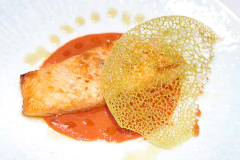 - Salmon in seafood sauce with green coral