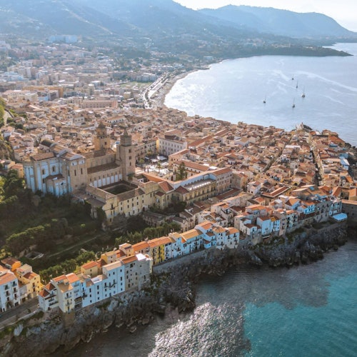 Travel in a comfortable minivan or minibus to Cefalù, a medieval town with narrow streets, sandy beaches, and a bay.