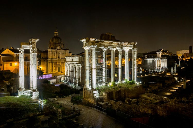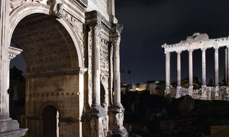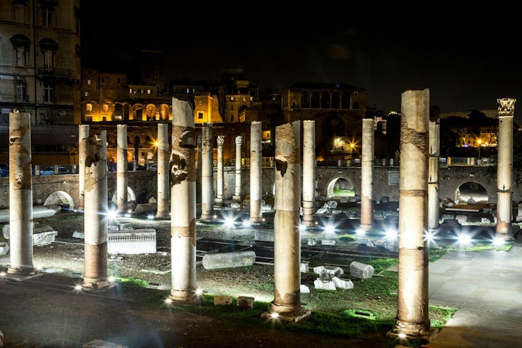 Passing by the Forums of Caesar and Augustus, you will make your way toward the highlight of the tour, the Colosseum. Enter the amphitheater in the evening, when it is quieter and more atmospheric, and discover the history of the monument and the people who once filled its stands.