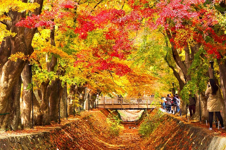 In autumn, Lake Kawaguchi's Maple Corridor transforms into a stunning canvas of red and gold. (Best time to visit: October 26 - November 20)