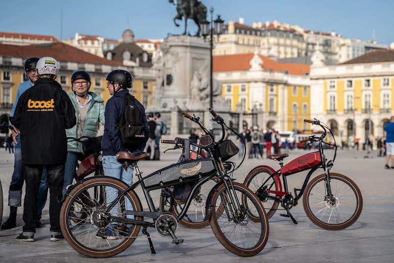 At the indicated time, we'll meet at Rua dos Douradores, located in the heart of the city center. After equipping ourselves with electric bikes and helmets, a brief instruction session will prepare us for our adventure around the Portuguese capital.