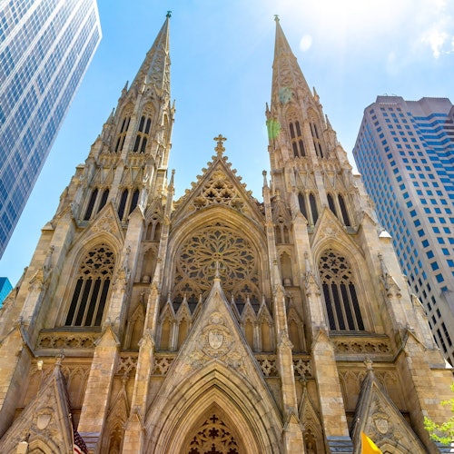 Walk past landmarks like Radio City Music Hall and Rockefeller Center. Visit St. Patrick’s Cathedral, a Gothic Revival building.
