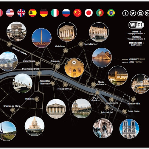 The menu regularly changes to offer fresh seasonal food. Please check the website bustronome.com/paris/ to know the unique menu you will get.