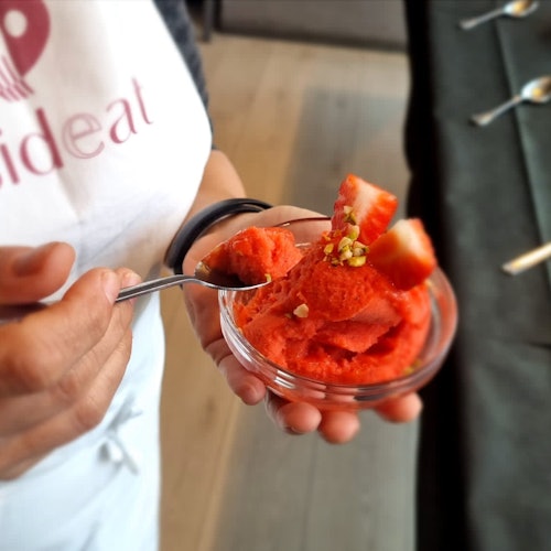 You'll learn how to make two different flavors of gelato step by step. You will assist the chef in preparing the ingredients and once combined, you will admire up close the creation of a true work of art: a richly flavored gelato that you can customize to your liking by choosing from a wide variety of ingredients and toppings!