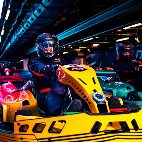 Take control of an F1®-inspired kart and navigate an engaging track at F1® Drive London. The karts come with in-screen digital displays, F1® engine sounds, DRS, and ERS. Use full-motion simulators, sample tasty food, and enjoy the electric atmosphere of race day at the fan zone.