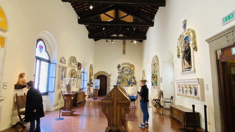 Then, you will immerse yourself in the early Renaissance, when the guide will explain the masterpieces made by Donatello (Saint George, the Lion, and the David) and Verrocchio. Later, the guide will escort you to the second floor, which is solely dedicated to the glazed terracotta done by Andrea and Giovanni Della Robbia.