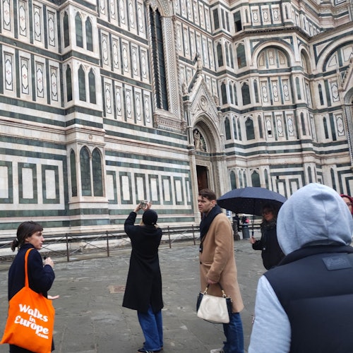 * Meet your guide in Piazza Duomo, directly across from the cafe of the Museo dell'Opera del Duomo. Your guide will have a signboard that says, “Walks In Europe”