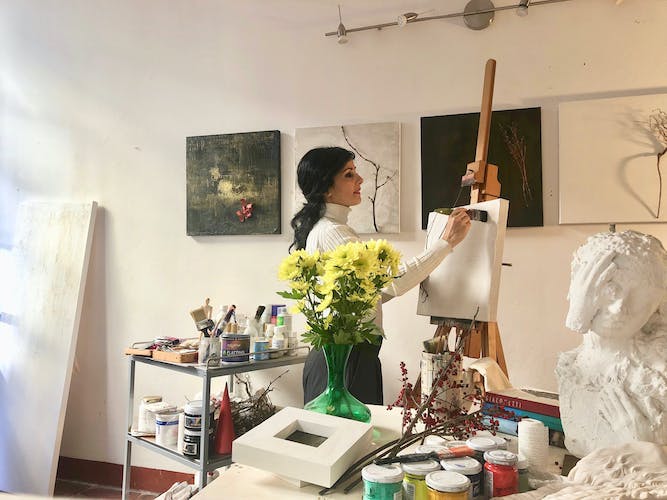 - Admire the art that hangs on the walls of Anna's studio