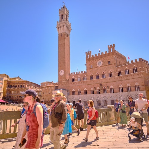 Enjoy an afternoon exploring Siena's narrow and scenic streets. Admire the city's artistic heritage, including the Gothic Cathedral and the Torre del Mangia in Piazza del Campo.