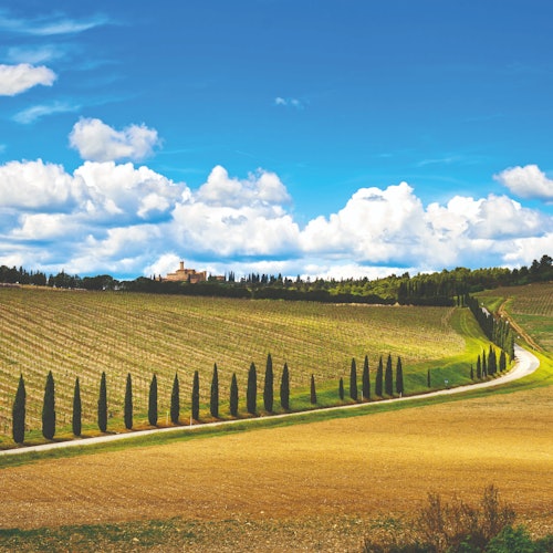In a comfortable coach bus, your day trip from Florence will have you traveling through the hills, vineyards, and cypress-lined roads of Tuscany, where each glance out of the window is worthy of a postcard.